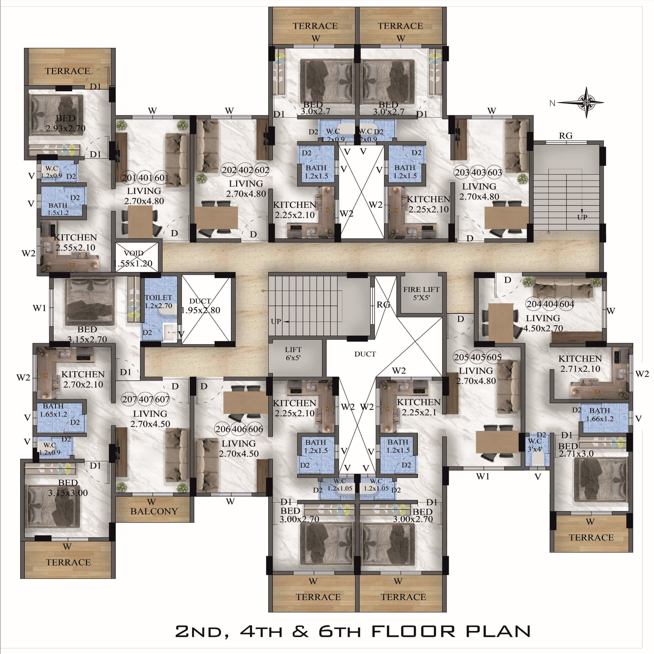 Each home at Om Shanthi Heights is crafted to maximize natural light, ventilation, and functional space planning. With contemporary interiors, durable materials, and attention to detail, the project ensures long-term value and refined living.