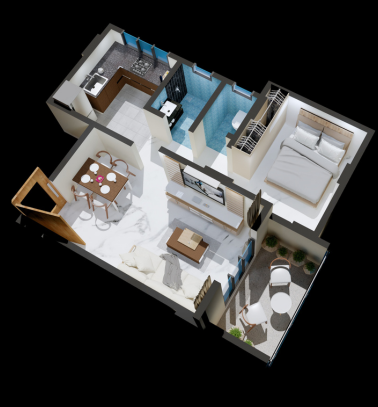 The 2BHK Render Project by MAF Developers showcases a thoughtfully designed apartment layout that perfectly balances space, comfort, and modern aesthetics. Every detail is carefully planned to maximize natural light, ventilation, and functionality.